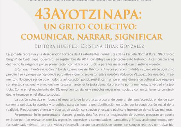 COLABORACIÓN CON CRISTINA HÍJAR, para el dossier DISCURSO VISUAL 43Ayotzinapa, un grito colectivo: comunicar, narrar, significar, del CENIDIAP.