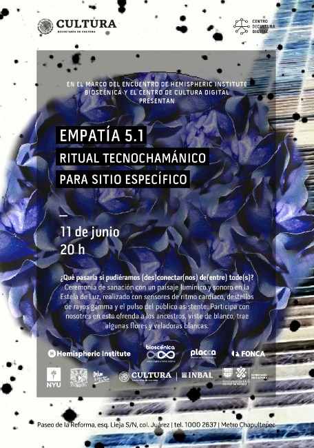 Empatía 5.1 se llevó a cabo el martes 11 de junio 2019 a las 8 pm en el marco del Onceavo Encuentro de Hemispheric Institute en el Centro de Cultura Digital (LEER MÁS)