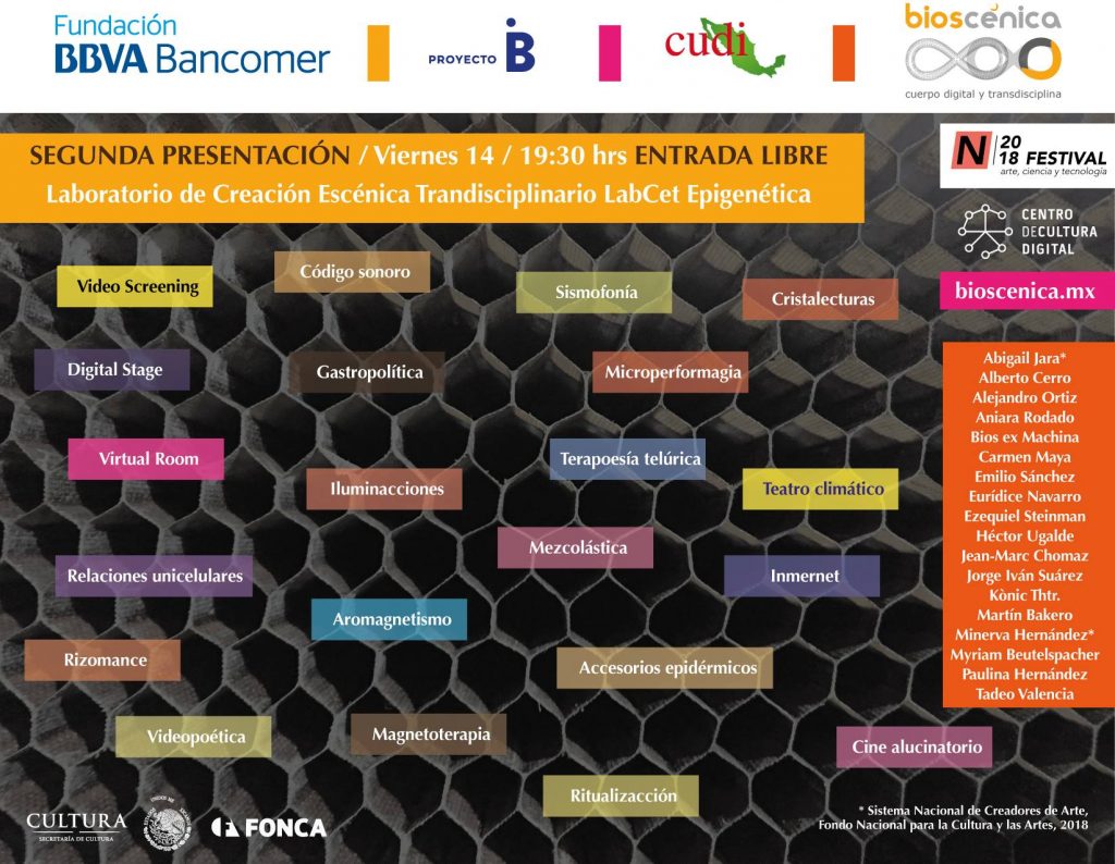 Poetas, coreógrafos, activistas, físicos, performers, artistas sonoros, dramaturgos, artistas electrónicos, biólogos y diseñadores se proponen movilizar y profundizar en los saberes ocultos que guarda el cuerpo, produciendo experiencias colectivas y materiales expresivos, multimediáticos y tecnológicos.