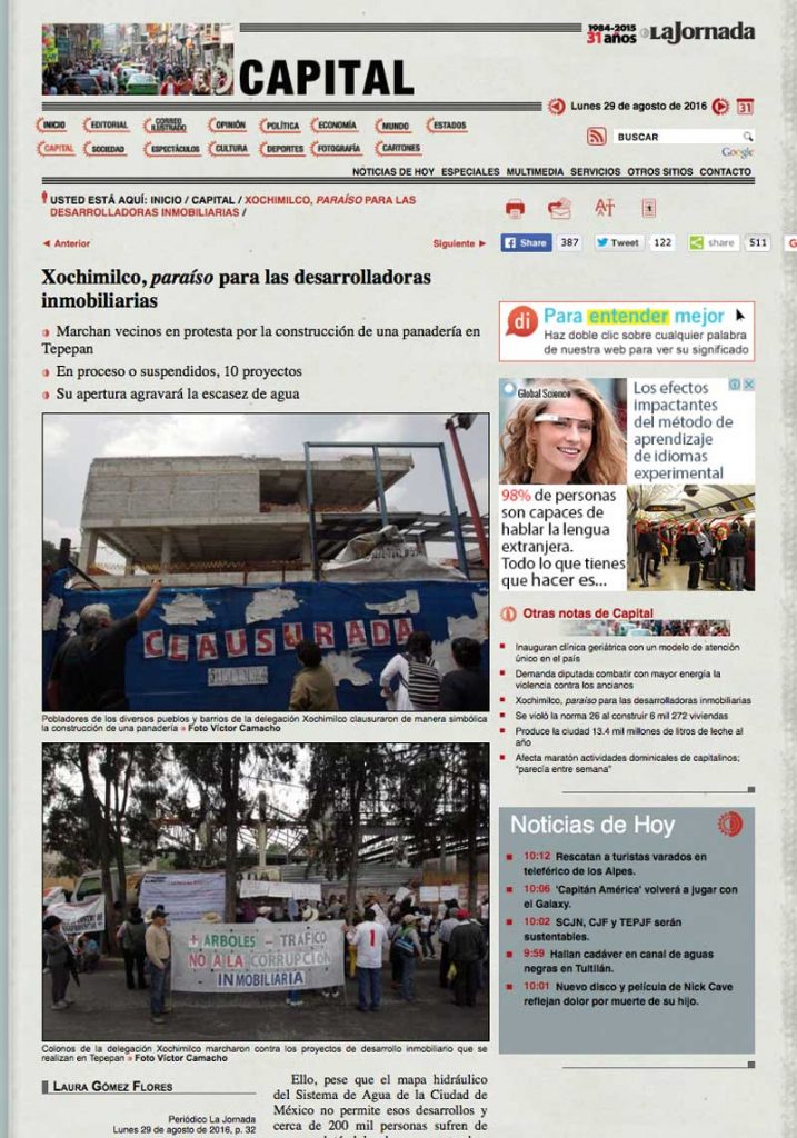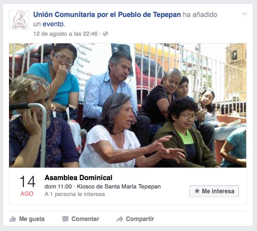 Durante 5 años, cada domingo nos reunimos en asamblea y comunicamos las actividades que realizamos, el avance de nuestras denuncias y demandas ante las autoridades delegacionales y el gobierno central, ante los organismos autónomos como la Comisión de Derechos Humanos del Distrito Federal (CDHDF) y la Procuraduría Ambiental y del Ordenamiento Territorial del Distrito Federal (PAOT).